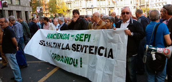 Sin embargo, no se ha conseguido materializar el acuerdo en una posterior reunión de la comisión técnica, porque SEPI pretendía transgredir los términos del acuerdo del 27 de octubre, aplicando el IPC negativo del año 2014 sobre aquellos expedientes que tienen vinculada la revisión anual salarial a la inflación real, por lo que los prejubilados han vuelto a concentrarse hoy ante la Hacienda estatal en Bilbao, para reclamar el pago de la deuda.
