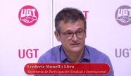 Intervienen Frederic Monell i Lliró, Secretario de Participación Sindical e Institucional de UGT; José Varela Ferrío, Sector de las Comunicaciones (UGT) y Cándido Méndez Rodríguez, Secretario General de UGT.
