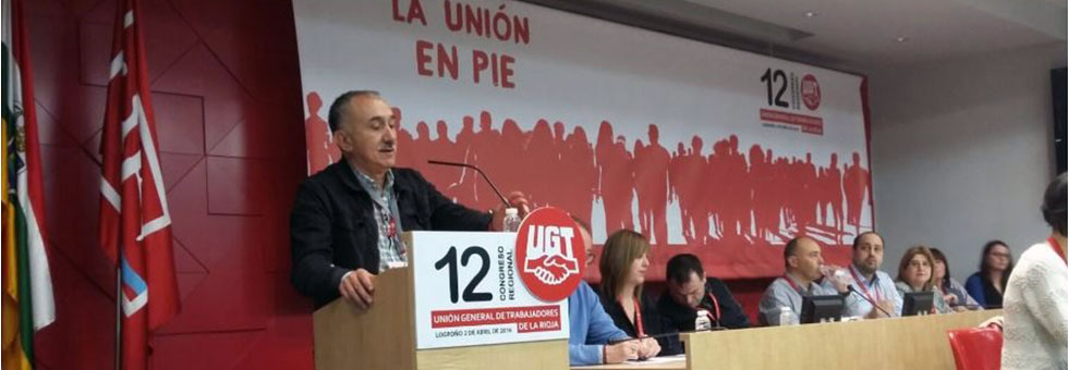 "Vamos a poner voz a los problemas de las personas", ha manifestado el Secretario General de UGT, Pepe Álvarez, durante su intervención en la clausura del 12 Congreso de UGT-La Rioja, y ha destacado a los mayores de 55 años, que ven mermada su pensión entre un 30% y un 40%, y a los que "hay que tenderles un puente hacia la jubilación"; a los jóvenes para que puedan encontrar de forma rápida un empleo, recuperando el contrato relevo a los 60 años, no solo en el sector privado sino también en la administración pública, jubilando a personas que tienen una edad, a la vez estaremos creando un puesto de trabajo con futuro para una persona joven; y ha apostado por el empleo de calidad a través de un plan de choque, entre otras propuestas.