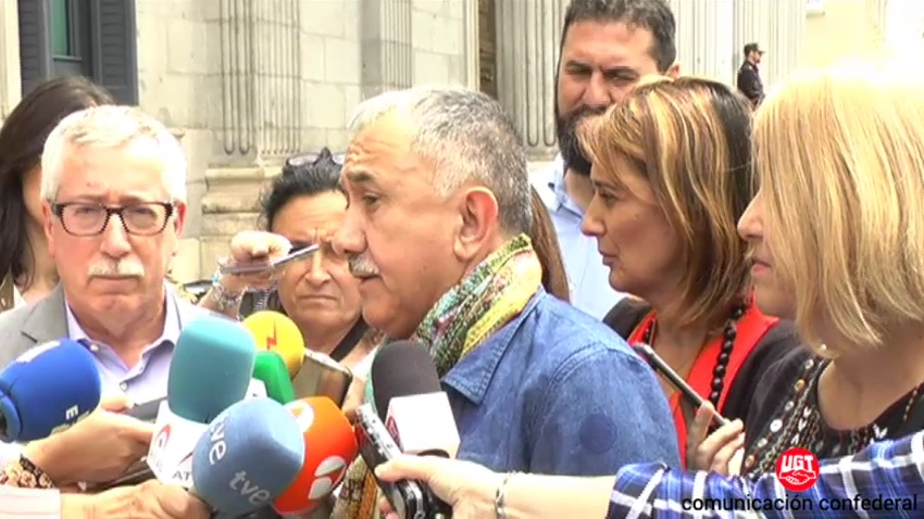 Declaraciones de Pepe Álvarez, Secretario General de UGT, tras registrar en el Congreso de los Diputados un documento de propuestas, conjunto con CCOO, para reformar el Código Penal y derogar así los artículos 315.3 y 172.