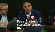 Intervención de Pepe Álvarez, Secretario General de UGT, en la rueda de prensa previa a la manifestación en Madrid con motivo del Primero de Mayo.