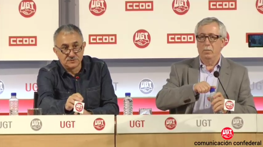 Pepe Álvarez, Secretario General de UGT e Ignacio Fdez. Toxo, Secretario General de CCOO, presentan, en rueda de prensa, actos y manifiesto del 1º de mayo de 2017