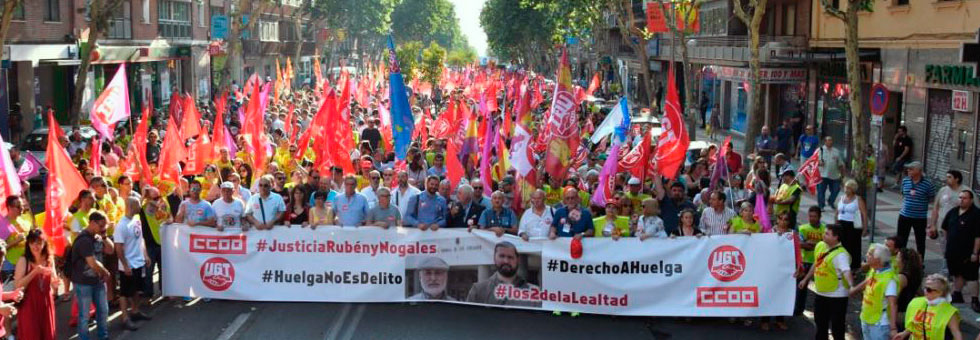 El Secretario General de UGT ha hecho estas declaraciones en el transcurso de la movilización en solidaridad con Rubén Ranz y José Manuel Nogales, y que se ha desarrollado desde el Parque Quinta de Torre Arias y el Juzgado de lo Penal nº 1 de Madrid, donde serán juzgados.