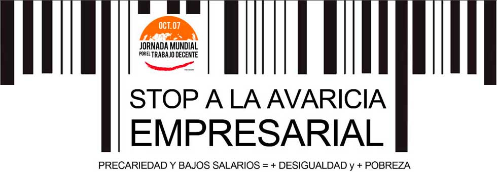 Este año la Jornada Mundial del Trabajo Decente, que celebramos el 7 de octubre, se desarrolla bajo el lema: “Stop a la avaricia empresarial. Precariedad y bajos salarios es igual a más desigualdad y más pobreza”.