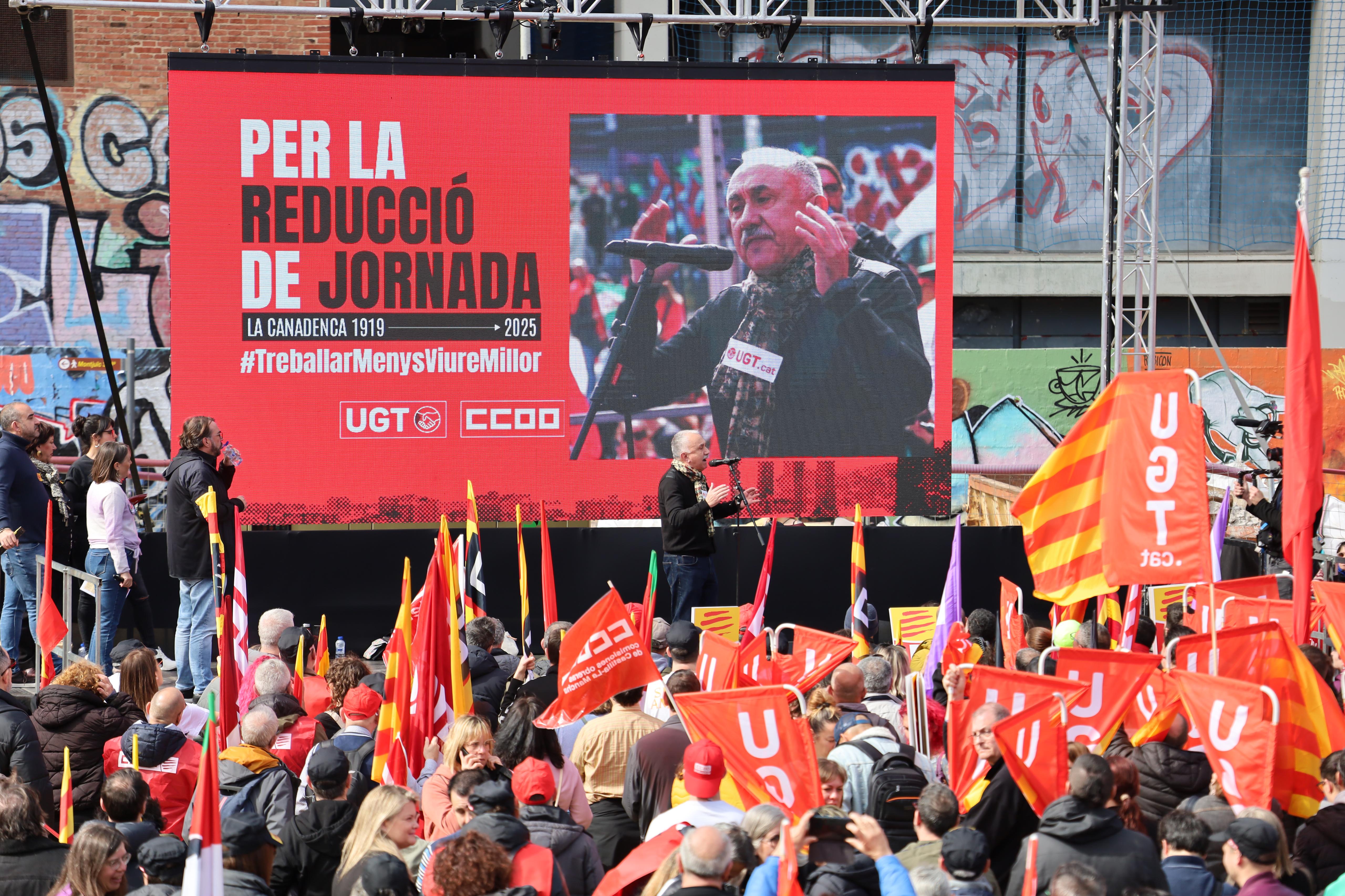 Pepe Álvarez, desde la concentración a favor de la reducción de la jornada laboral en Barcelona: “Queremos conocer las razones que tienen los grupos políticos para decir que no”