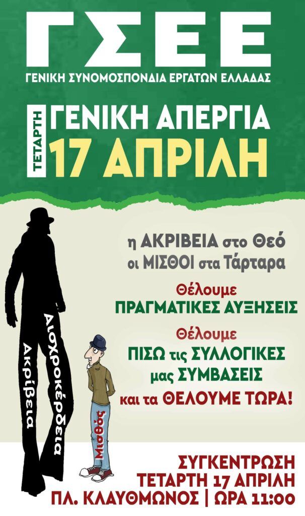 Para el sindicato, la inflación no puede ser el arma arrojadiza contra las personas trabajadoras en todo el continente europeo. La GSEE de Grecia lleva desarrollando una campaña de información dirigida a los trabajadores y trabajadoras para explicar los motivos de la huelga de este 17 de abril.
