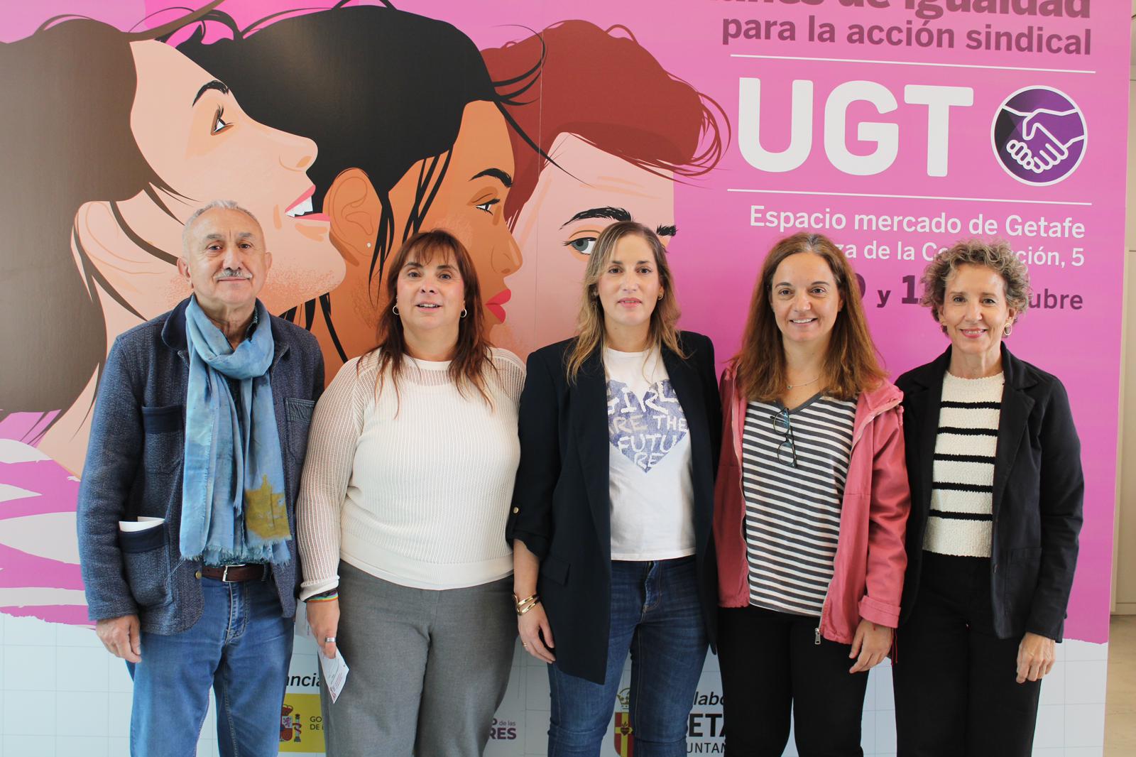 El acto, presentado por la vicesecretaria general de UGT, Cristina Antoñanzas, ha sido inaugurado por el secretario general del sindicato, Pepe Álvarez, y la secretaria general de UGT Madrid, Marina Prieto. También han participado en la bienvenida a las jornadas la alcaldesa de Getafe, Sara Hernández, y la secretaria de Estado de Igualdad y para la Erradicación de la Violencia contra las Mujeres, Aina Calvo.