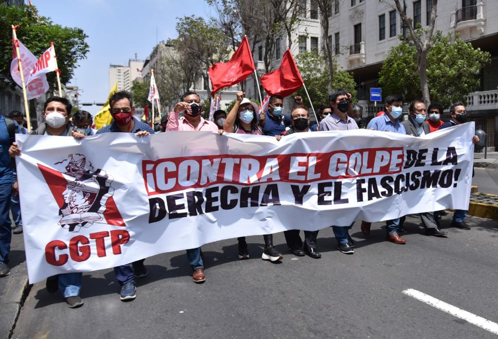 Ante el complejo contexto político en Perú, donde el recientemente elegido gobierno enfrenta permanentes intentos de desestabilización por parte de sectores económicos y políticos del país, la CGT de Perú convocó una jornada de protesta el pasado 7 de diciembre, en rechazo de la agenda golpista de dichos sectores conservadores. La respuesta de las fuerzas de seguridad se tradujo en una fuerte represión, ante la que el propio Secretario General de la CGTP, Gerónimo López, exigió al Ministro del interior el cese de la represión y la depuración de responsabilidades entre las fuerzas de seguridad responsables de la represión.