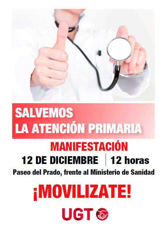 No podemos dejar que la Atención Primaria se siga degradando, como consecuencia de la poca financiación y la privatización de servicios, puesto que es la puerta de entrada y el eje principal del Sistema Nacional de Salud. Por ello, UGT considera que es fundamental recuperar lo recortado en los últimos años, incrementando el presupuesto hasta el 25% del total, así como invertir de manera clara en recursos humanos y ofertar empleo público estable y de calidad; eliminar las trabas de acceso a pruebas diagnósticas y terapéuticas e incorporar una cartera de servicios óptima y homogénea en todas las Comunidades Autónomas; y garantizar unos centros de salud abiertos, accesibles, próximos a toda la población y sin listas de espera.
