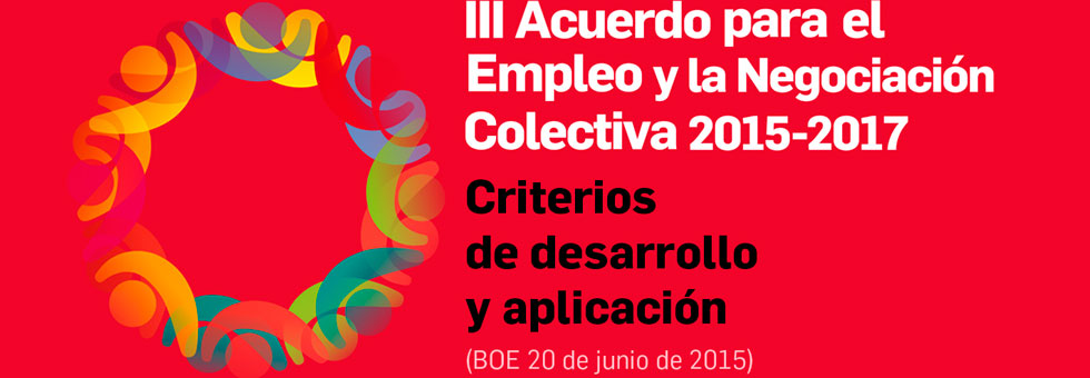 La Unión General de Trabajadores ha editado la guía “III Acuerdo para el Empleo y la Negociación Colectiva 2015-2017. Criterios de desarrollo y aplicación”, una guía explicativa sobre los contenidos del acuerdo que desgrana pormenorizadamente los compromisos del mismo.
