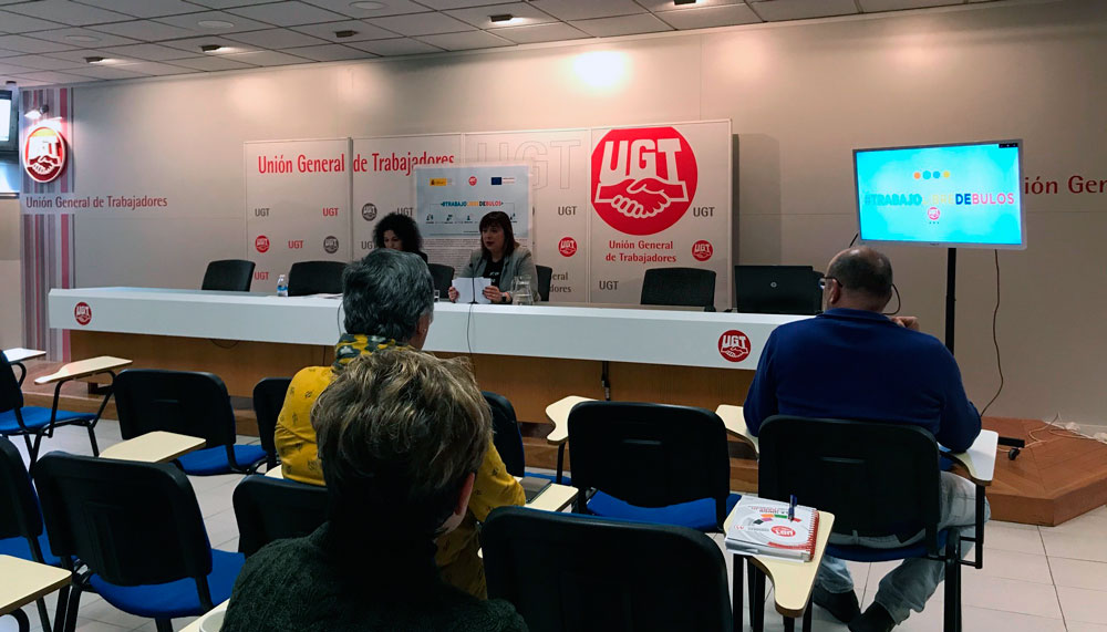 La Vicesecretaria General de UGT, Cristina Antoñanzas, y la Responsable Confederal de Migraciones, Ana María Corral, han presentado hoy en Madrid la campaña “#TrabajoLibreDeBulos”, una campaña de sensibilización en el ámbito laboral contra los discursos falsos o tergiversados de algunas formaciones políticas o de algunos medios de comunicación que fomentan prejuicios y rechazo hacia la población inmigrante o las personas de nacionalidad u origen extranjero.