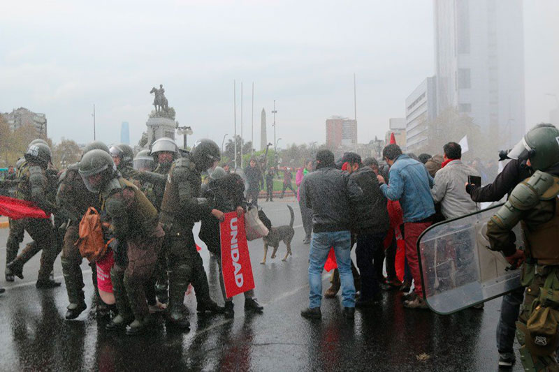 En la jornada del día de ayer, en el marco de la protesta nacional, convocada por más de 60 organizaciones sociales en todo el país, las fuerzas de seguridad chilenas reprimieron duramente a los manifestantes, incluyendo la detención de sindicalistas y la prohibición del ejercicio del derecho a la protesta y la libertad de expresión.