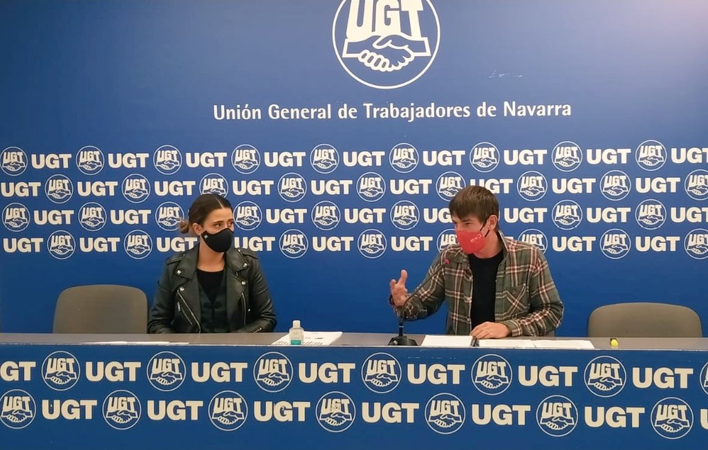 El portavoz de RUGE – Revolución Ugetista, Eduardo Magaldi, y la Secretaria de Juventud de UGT-Navarra, Aroa Celorrio, han presentado RUGE Navarra en una rueda de prensa en la que han expuesto los problemas laborales de las personas jóvenes, el colectivo más afectado laboralmente por la pandemia, y que representa el 42,2% del total de desempleados en Navarra. En este sentido, han expuesto que el 49,5% de los 9.300 empleos destruidos el pasado 2020 como consecuencia de la COVID-19 correspondían a jóvenes de entre 16 y 34 años, y el número de personas desempleadas se incrementó en ese mismo periodo en 8.200, de las que 3.800 pertenecían al mismo rango de edad, un 46,34%.