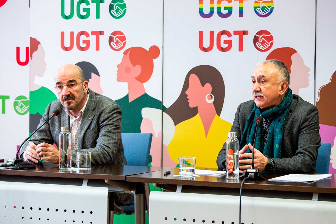 El secretario general de UGT, Pepe Álvarez, y el vicesecretario general de Política Sindical de UGT, Fernando Luján, han presentado hoy el informe sobre ‘La regulación de la jornada laboral en Europa y España’ y han recordado que el sindicato ha presentado una reclamación colectiva ante el Comité Europeo de Derechos Sociales para que las horas extraordinarias se abonen como mínimo un 25% más que una hora ordinaria, y que incluye también la exigencia de incrementar las garantías del registro de la jornada para que muestren las horas reales que efectivamente se trabajen ya sean ordinarias o extraordinarias.