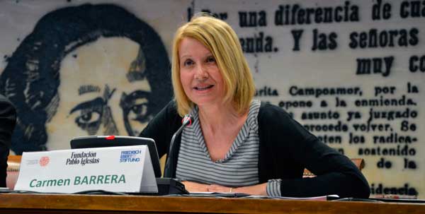 Mari Carmen Barrera ha realizado estas declaraciones durante las jornadas en el Senado de la Fundación Pablo Iglesias sobre el modelo europeo de relaciones laborales, donde ha señalado que el modelo que ha impuesto el Gobierno del PP, con sus políticas de austeridad y su reforma laboral, "puede decirse que ha derivado hacia la flexiprecariedad, porque ha roto los equilibrios entre flexibilidad y seguridad y ha fomentado el empleo precario y sin derechos, los bajos salarios y la desigualdad". Además, "ha vulnerado normas comunitarias e internacionales".
