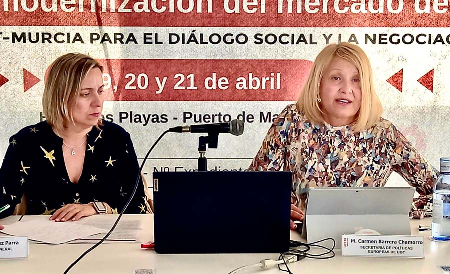 La secretaria de Políticas Europeas de UGT, Mari Carmen Barrera, interviene en una ponencia sobre la Unión Europea en materia social y laboral organizada por UGT-Región de Murcia