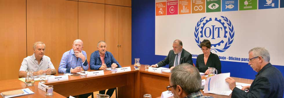 Una delegación de UGT y CCOO encabezada por sus secretarios generales, Pepe Álvarez e Ignacio Fernandez Toxo ha mantenido una reunión con la Representante en España del Alto Comisionado de Naciones Unidas para los Refugiados, Francesca Friz-Prguda y el Director de la Oficina de la Organización Internacional del Trabajo (OIT) en España, Joaquín Nieto, para analizar la situación de los refugiados y migrantes y su integración laboral.