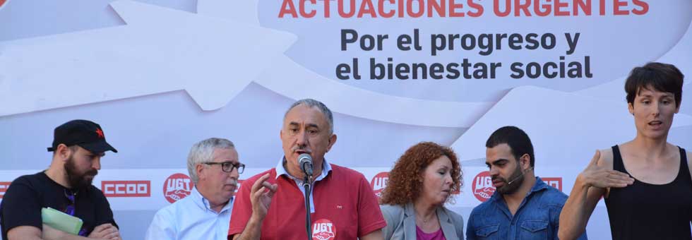 Los secretarios generales de UGT y CCOO, Pepe Álvarez e Ignacio Fernández Toxo, se han dirigido hoy por carta a los partidos políticos que obtuvieron representación parlamentaria en las elecciones generales del 26 de junio y que apoyaron las “20 Actuaciones urgentes por el progreso y el Bienestar social” propuestas por los sindicatos, instándoles a incorporar a su agenda política la aprobación y puesta en marcha de las propuestas contenidas en un documento elaborado conjuntamente por CCOO y UGT, y que obtuvo el respaldo de los partidos que conforman una mayoría parlamentaria, por lo que habría una mayoría suficiente para legislar en este sentido.