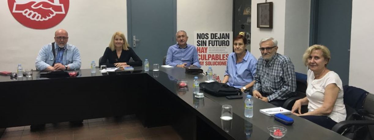 Una delegación de UGT, encabezada por el Secretario General, Pepe Álvarez, mantuvo ayer una reunión con representantes de la Federación de Asociaciones para la Defensa de la Sanidad Pública, entre los que estuvo presente por su portavoz y Presidente de la Asociación en Defensa de la Sanidad Pública de Madrid (ADSP), Marciano Sánchez Bayle.