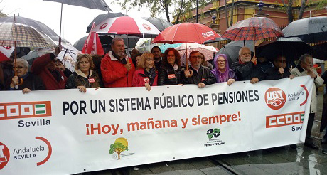 Un millar de personas han participado este viernes en la manifestación convocada en Sevilla por los sindicatos en defensa del sistema público de pensiones. “Pedimos algo muy claro y es lo que se está haciendo en otros países de la UE: que las pensiones suban acorde con el crecimiento de los precios. Si suben los precios y el nivel de la vida,… por qué no suben las pensiones de millones de personas que durante muchos años han desempeñado un trabajo y que ahora tienen que tener la recompensa”, ha defendido Carmen Castilla durante la manifestación.