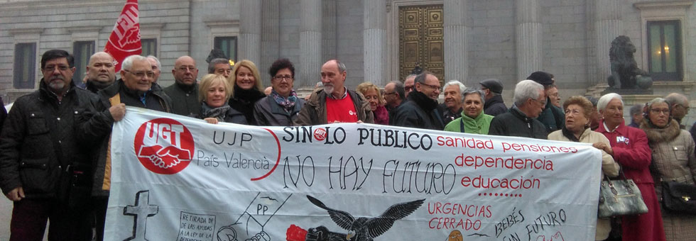 La Secretaria de Políticas Sociales, Empleo y Seguridad Social de UGT, Mari Carmen Barrera, ha participado en el día de hoy en la concentración convocada por la Unión de Jubilados y Pensionistas del sindicato (UJP-UGT) frente al Congreso de los Diputados para exigir la revalorización de las pensiones en base a la previsión de IPC a final de año y manifestar su rechazo al veto del Gobierno a la proposición de la mayoría de los grupos parlamentarios a esta revalorización.